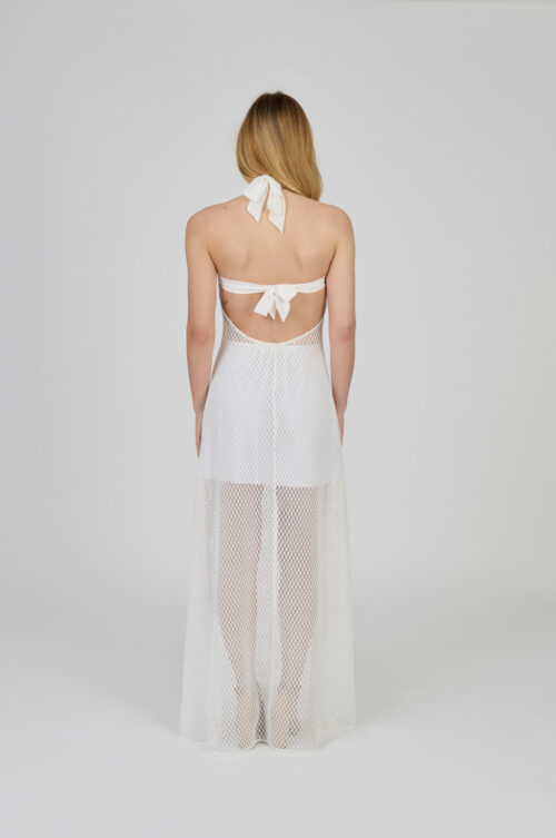 VESTIDO LONGO FRENTE ÚNICA EM TELA BRANCA