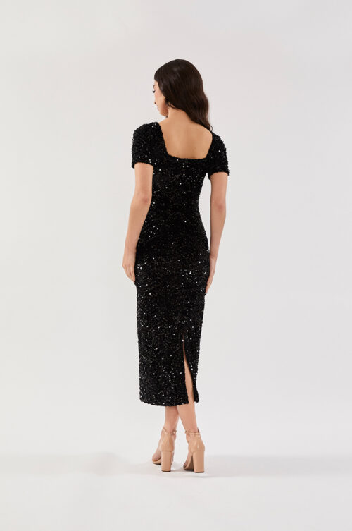VESTIDO MIDI DECOTE QUADRADO PAETÊ VELVET PRETO